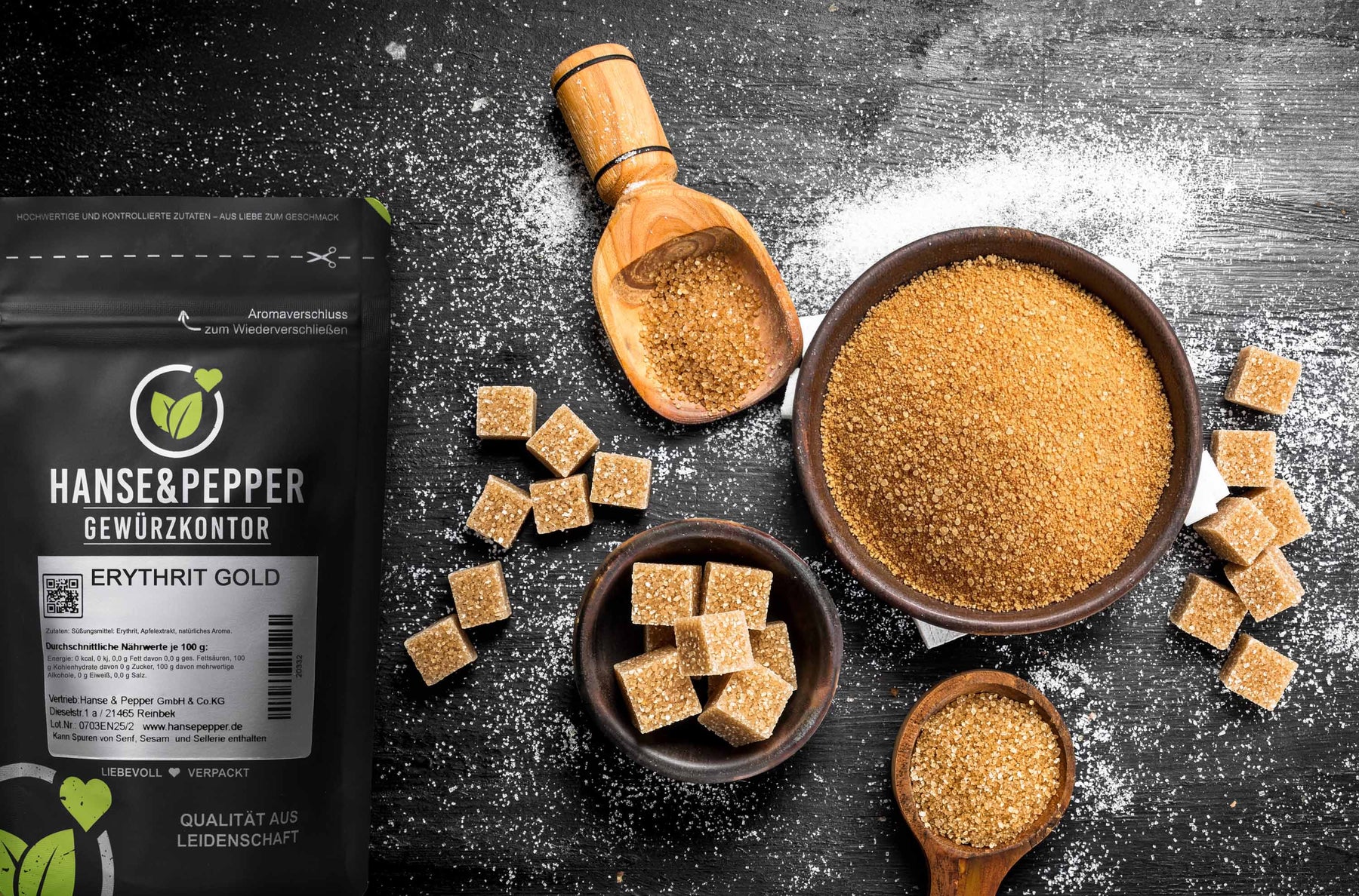 Die warme Karamellnote sorgt für die vertraute Rohrzucker-Tiefe in Kaffee, Desserts und beim Backen.