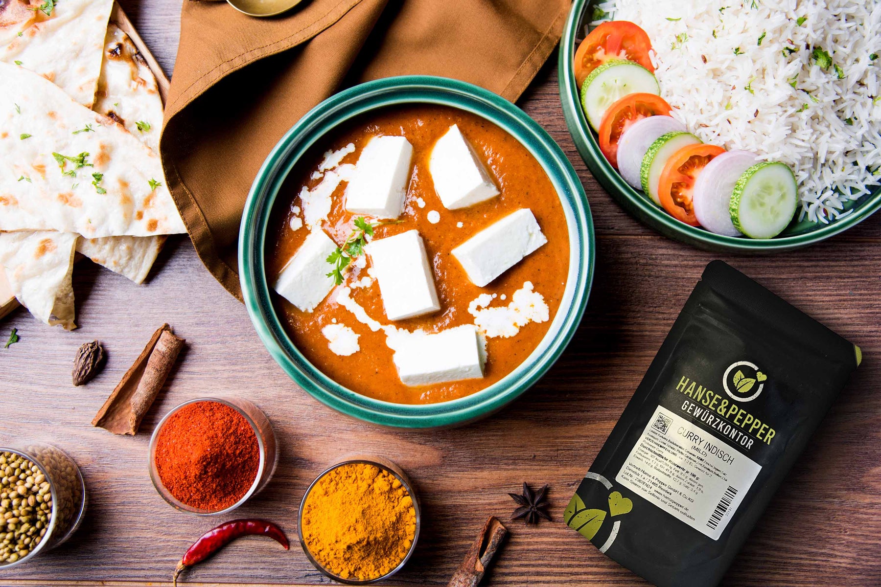 • Unser Curry Indisch Madras hat eine milde pikante Note, welches durch einen Hauch enthaltenem Chillipulver hervorgerufen wird.