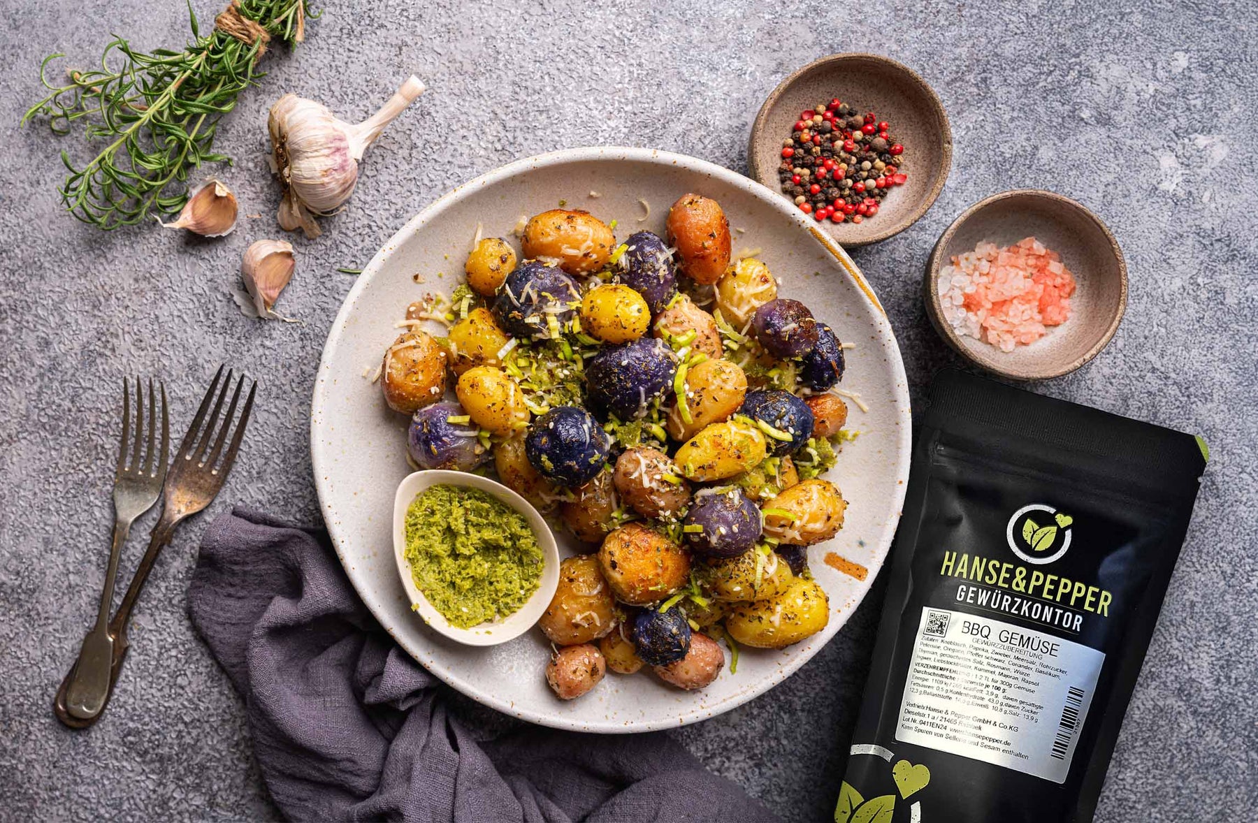 Diese raffinierte Gewürzmischung vereint frische, saisonale Zutaten mit einer geheimen Kombination aus intensiven Aromen, die zusammen ein besonderes Geschmackserlebnis schaffen.